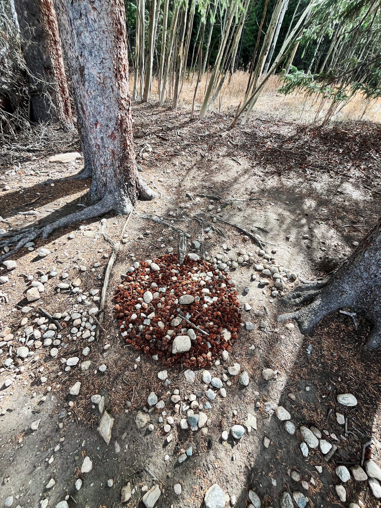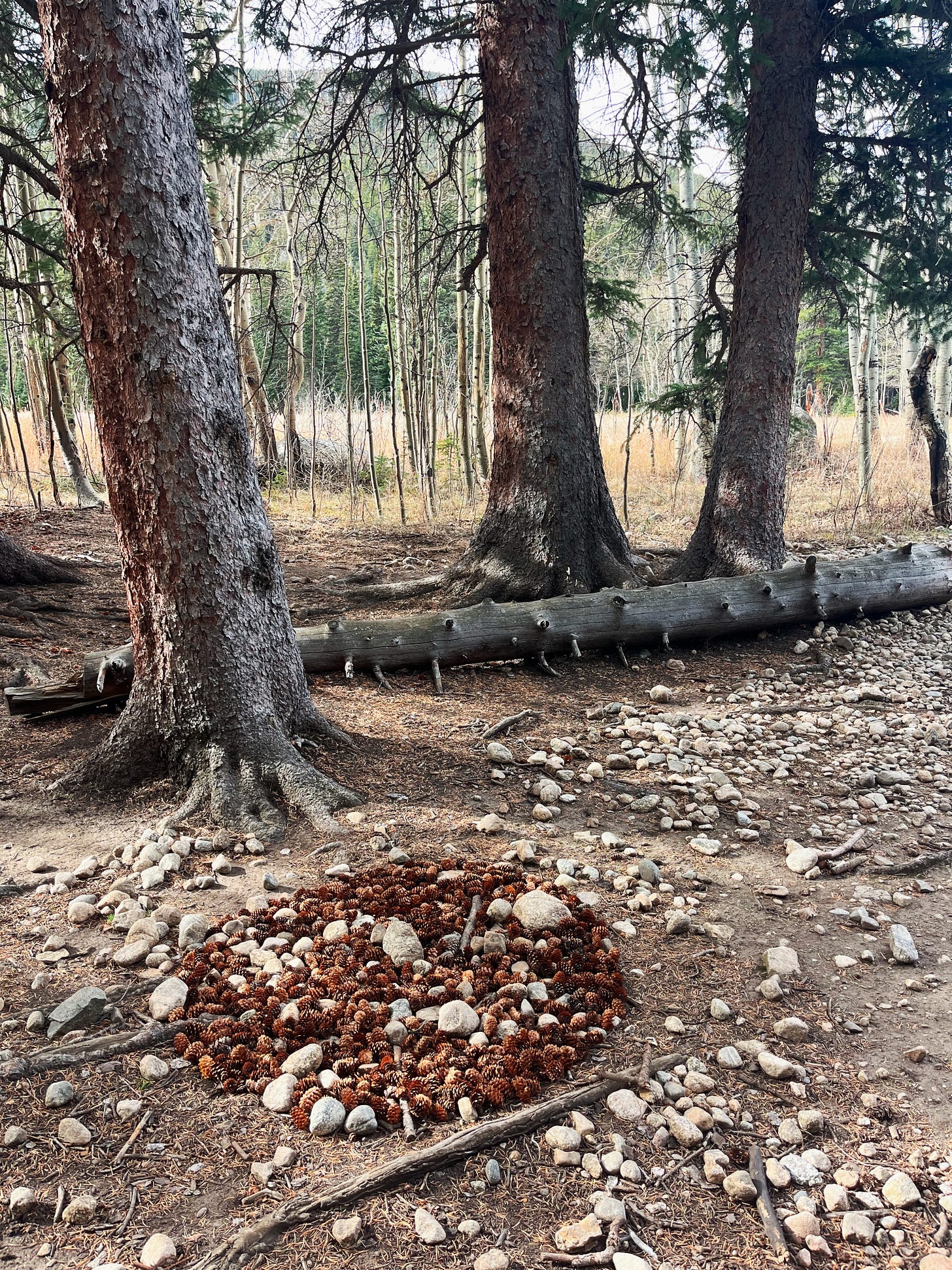 Pine cones covered its feet like a decorative tree skirt. I was called to collect them so the tree could grow beyond its’ width. A spot in between two neighboring trees sucked me in. I grabbed the cones and transplanted them by the handful, a symbol of abundance that wanted to take place.